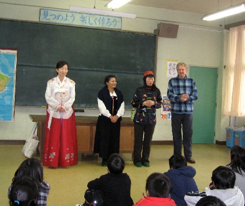 The international education program in Yamazaki elementary school was held on Tuesday, February 22 in 2011, to have a new look at Japanese cultures, to understand foreign cultures, and to exchange with foreign lecturers.