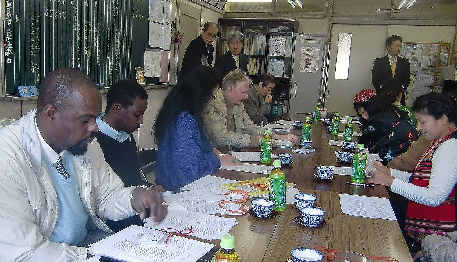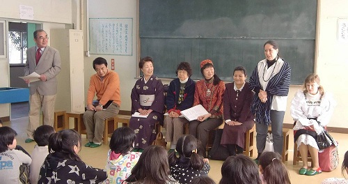 The 12 th World Meeting was held at Nanbu elementary school to have a new look at Japanese cultures, to understand cultures in the world, and to exchange with foreign lecturers.