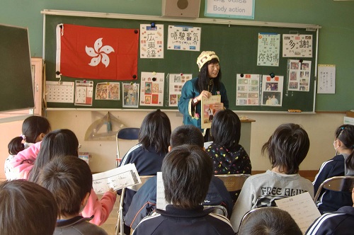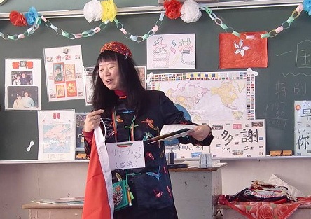 The pupils got explanations that 1) Hong Kong was returned from UK to China fourteen years ago, 2) it has a population of seven million, and 3) it has a structure of “one country, two systems”.