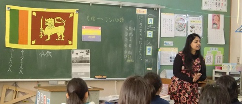 The lecturer, Ms. Nadeeka Basnayake, gave explanations of Sri Lanka (the national flag, geography, population, history, cultures, education system, elementary school, food, animals, customs, simple words, children’s play, etc.) with her voice full of life and in full of humor.