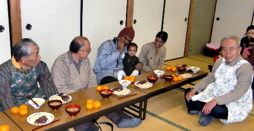 Having a chat, we all had rice-cake with bean jam,