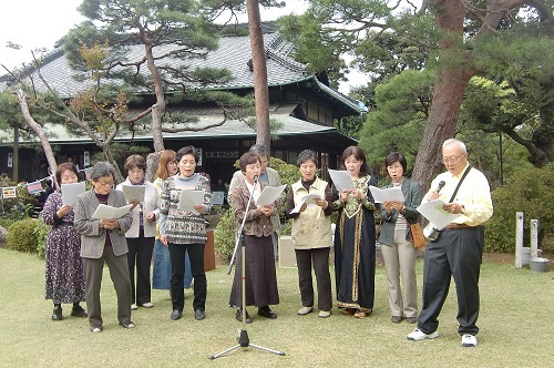 In the last of the opening ceremony, a song ”Sato no Aki” by all pupils echoed in the auditorium.