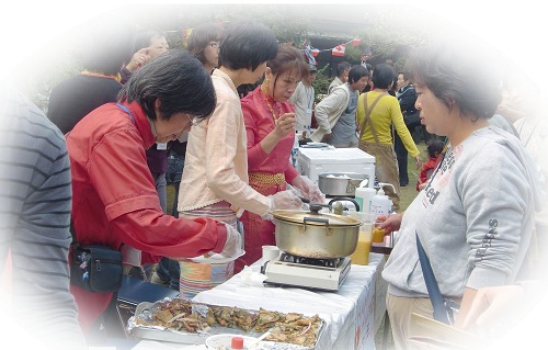 It was wonderful that we could promote the intercultural communications among various foreign people, enjoy attractions such as dancing and singing songs, taste unique and delicious foods, and try on kimono and ethnic costumes.