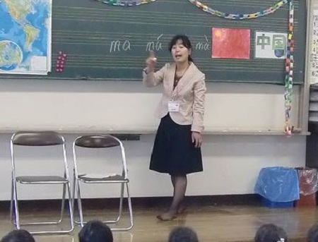 Showing the map, the lecturer introduced Malaysian culture, language, and industry. She explained that the weather of Malaysia was mild all the year, and there were a lot of Japan’s overseas enterprises in Malaysia. After the introduction, the pupils studied some greeting expressions and sang a familiar song in chorus in Malaysian language.