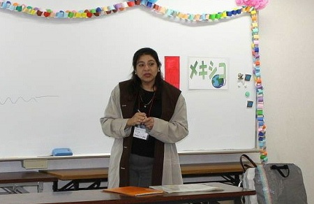 The lecturer introduced Mexican culture, food and the weather of Mexico. The land area is 5 times as large as Japan, and the population is 0.85 times as large as Japan. The pupils were surprised to hear that many Mexican children quit school before graduation because of the severity in school life and promotion. And they were glad to hear that Mexican children were very fond of Japanese animation.