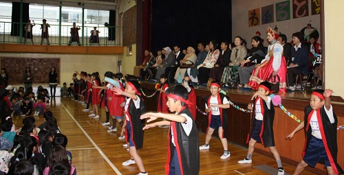 The opening ceremony began with pupils’ spirited “Yosakoi” dancing in the auditorium.