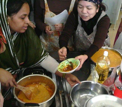 Under explanation and demonstration by the lecturers, we learned how to cook genuine curry and how to eat it.
