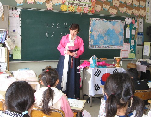 The special guest, Ms. Bonfa Pak who is a colleague of Ms. Kasai and a reporter of KBS ( Korean Broadcasting System) came here to observe the class.