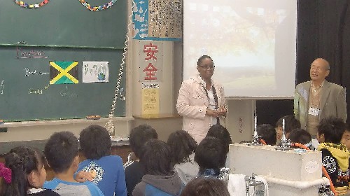 The international education program in Yamazaki elementary school was held on Thursday, November 24, 2011, to find the difference between foreign country and Japan, and that there are a lot of way of thinking and sense of values, through exchange with foreign lectures. Three foreign lecturers from three countries (Malaysia, Hong Kong, and Peru) were invited and three NIA staffs joined. Yamazaki elementary school was founded in 1980. It has 12 classes, 377 pupils in total. This time, 3 classes, 60 fifth-grader pupils attended the program.