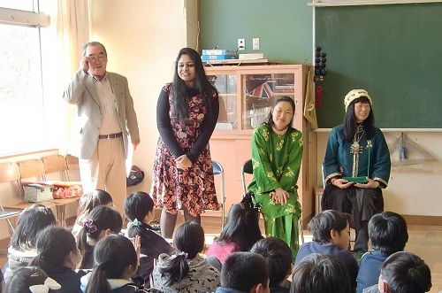The international education program in Yamazaki elementary school was held on Tuesday, February 22 in 2011, to have a new look at Japanese cultures, to understand foreign cultures, and to exchange with foreign lecturers.