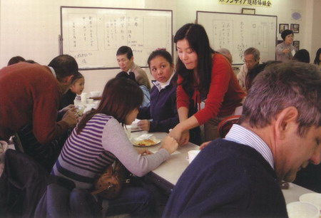 After lunch, the foreign learners studied how to write a New Year’s card in Japanese.