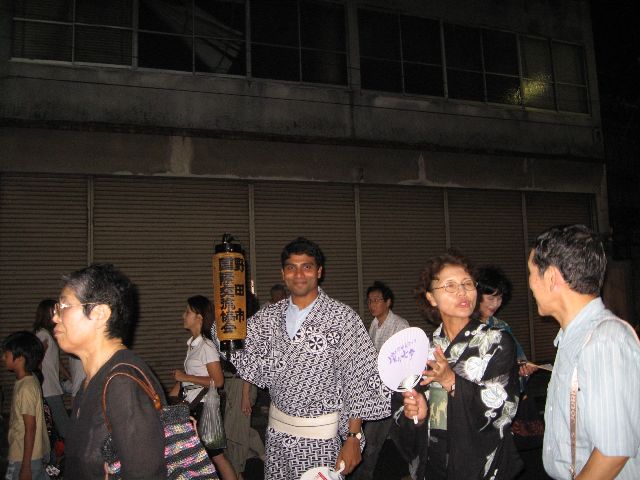 Members of NIA including foreign exchange students of our home stay program enjoyed dancing in the parade wearing yukata (simple summer kimono). Many people from Kikkoman Co., from City Hall, various women organization, and other citizens were dancing and paraded the main street of the town in yukata.